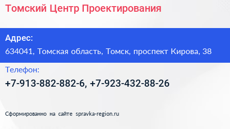 Томский Центр Проектирования по адресу 634041, Томская область, Томск, проспект Кирова, 38 в дальнейшем Организация, размещена в следующих категориях: