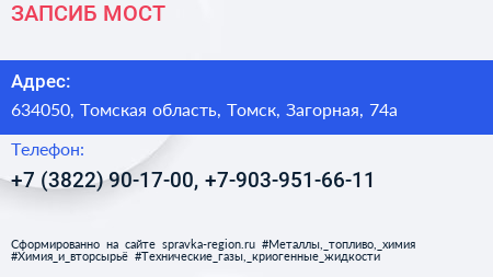 ЗАПСИБ-МОСТ по адресу 634050, Томская область, Томск, Загорная, 74а в дальнейшем Организация, размещена в следующих категориях: