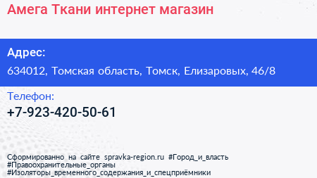 Амега Ткани, интернет-магазин по адресу 634012, Томская область, Томск, Елизаровых, 46/8 в дальнейшем Организация, размещена в следующих категориях: