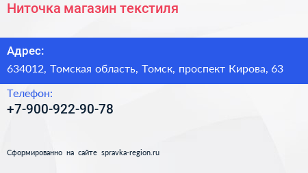 Ниточка, магазин текстиля по адресу 634012, Томская область, Томск, проспект Кирова, 63 в дальнейшем Организация, размещена в следующих категориях: