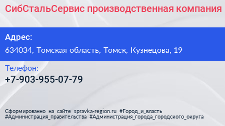 СибСтальСервис, производственная компания по адресу 634034, Томская область, Томск, Кузнецова, 19 в дальнейшем Организация, размещена в следующих категориях: