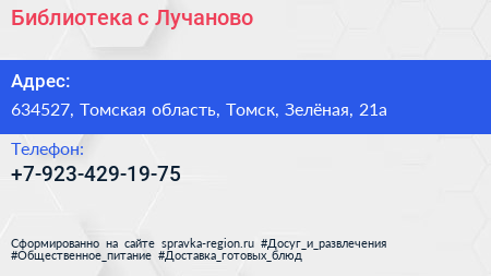 Библиотека, с. Лучаново по адресу 634527, Томская область, Томск, Зелёная, 21а в дальнейшем Организация, размещена в следующих категориях: