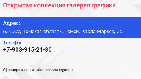 Открытая коллекция, галерея графики по адресу 634009, Томская область, Томск, Карла Маркса, 36 в дальнейшем Организация, размещена в следующих категориях: