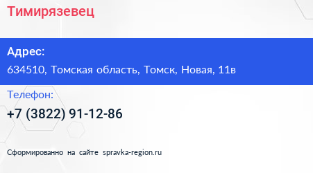 Тимирязевец по адресу 634510, Томская область, Томск, Новая, 11в в дальнейшем Организация, размещена в следующих категориях: