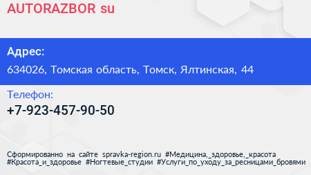 AUTORAZBOR.su по адресу 634026, Томская область, Томск, Ялтинская, 44 в дальнейшем Организация, размещена в следующих категориях: