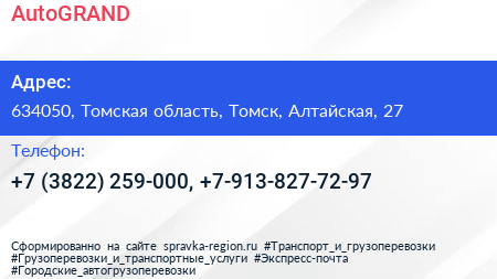 AutoGRAND по адресу 634050, Томская область, Томск, Алтайская, 27 в дальнейшем Организация, размещена в следующих категориях: