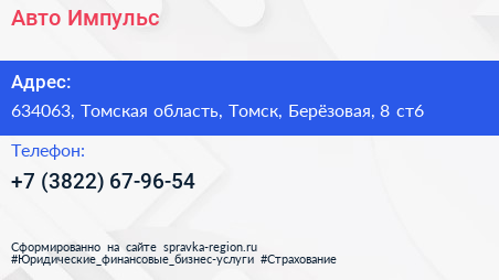 Авто-Импульс по адресу 634063, Томская область, Томск, Берёзовая, 8 ст6 в дальнейшем Организация, размещена в следующих категориях: