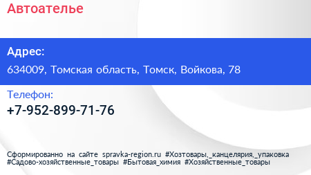 Автоателье по адресу 634009, Томская область, Томск, Войкова, 78 в дальнейшем Организация, размещена в следующих категориях: