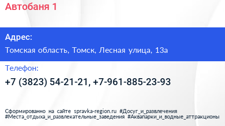 Автобаня №1 по адресу Томская область, Томск, Лесная улица, 13а в дальнейшем Организация, размещена в следующих категориях:
