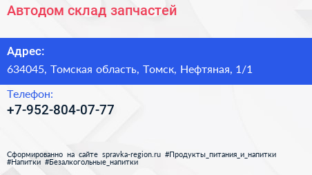 Автодом, склад запчастей по адресу 634045, Томская область, Томск, Нефтяная, 1/1 в дальнейшем Организация, размещена в следующих категориях: