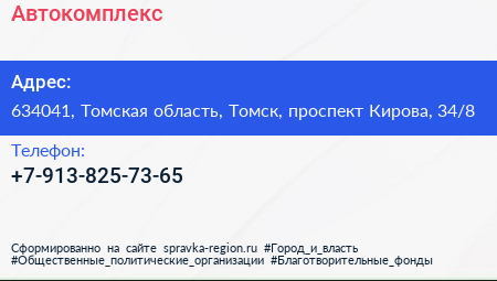 Автокомплекс по адресу 634041, Томская область, Томск, проспект Кирова, 34/8 в дальнейшем Организация, размещена в следующих категориях: