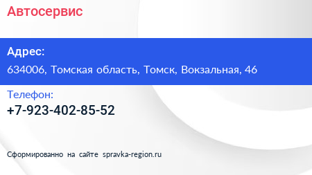 Автосервис по адресу 634006, Томская область, Томск, Вокзальная, 46 в дальнейшем Организация, размещена в следующих категориях: