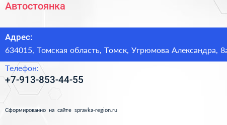 Автостоянка по адресу 634015, Томская область, Томск, Угрюмова Александра, 8а в дальнейшем Организация, размещена в следующих категориях: