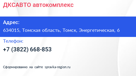 ДКСАВТО, автокомплекс по адресу 634015, Томская область, Томск, Энергетическая, 6 в дальнейшем Организация, размещена в следующих категориях: