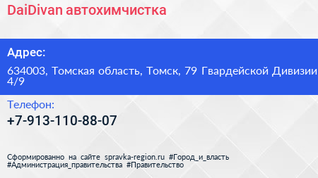 DaiDivan, автохимчистка по адресу 634003, Томская область, Томск, 79 Гвардейской Дивизии, 4/9 в дальнейшем Организация, размещена в следующих категориях: