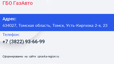 ГБО ГазАвто по адресу 634027, Томская область, Томск, Усть-Киргизка 2-я, 23 в дальнейшем Организация, размещена в следующих категориях:
