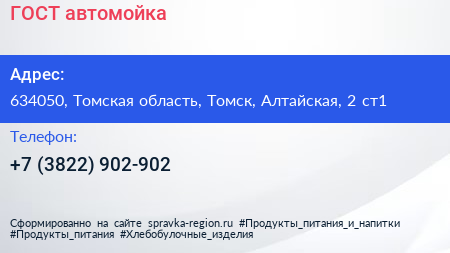ГОСТ, автомойка по адресу 634050, Томская область, Томск, Алтайская, 2 ст1 в дальнейшем Организация, размещена в следующих категориях: