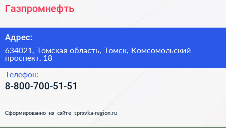 Газпромнефть по адресу 634021, Томская область, Томск, Комсомольский проспект, 18 в дальнейшем Организация, размещена в следующих категориях: