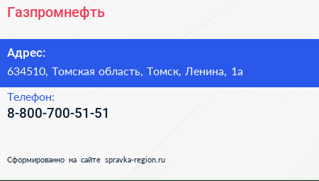 Газпромнефть по адресу 634510, Томская область, Томск, Ленина, 1а в дальнейшем Организация, размещена в следующих категориях: