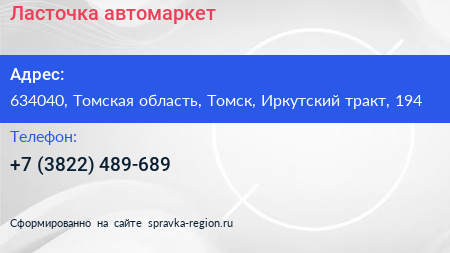 Ласточка, автомаркет по адресу 634040, Томская область, Томск, Иркутский тракт, 194 в дальнейшем Организация, размещена в следующих категориях: