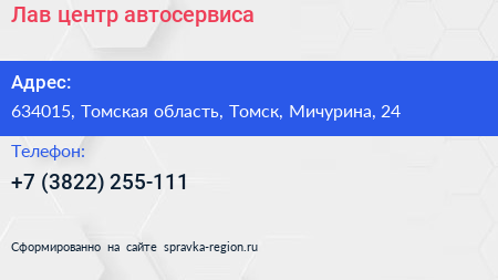 Лав, центр автосервиса по адресу 634015, Томская область, Томск, Мичурина, 24 в дальнейшем Организация, размещена в следующих категориях: