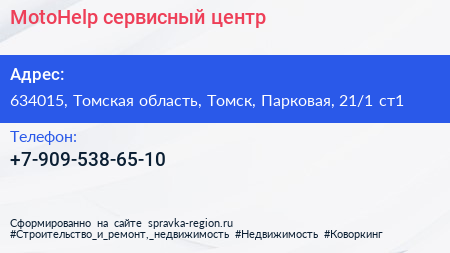 MotoHelp, сервисный центр по адресу 634015, Томская область, Томск, Парковая, 21/1 ст1 в дальнейшем Организация, размещена в следующих категориях: