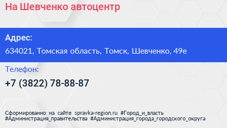 На Шевченко, автоцентр по адресу 634021, Томская область, Томск, Шевченко, 49е в дальнейшем Организация, размещена в следующих категориях: