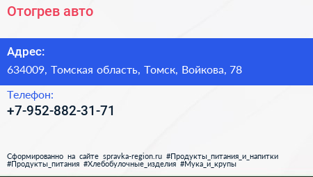 Отогрев авто+ по адресу 634009, Томская область, Томск, Войкова, 78 в дальнейшем Организация, размещена в следующих категориях: