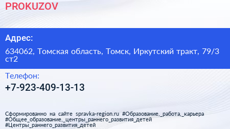 PROKUZOV по адресу 634062, Томская область, Томск, Иркутский тракт, 79/3 ст2 в дальнейшем Организация, размещена в следующих категориях: