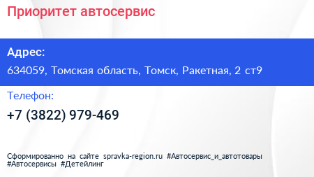 Приоритет, автосервис по адресу 634059, Томская область, Томск, Ракетная, 2 ст9 в дальнейшем Организация, размещена в следующих категориях: