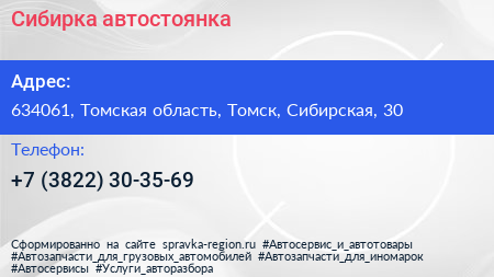 Сибирка, автостоянка по адресу 634061, Томская область, Томск, Сибирская, 30 в дальнейшем Организация, размещена в следующих категориях: