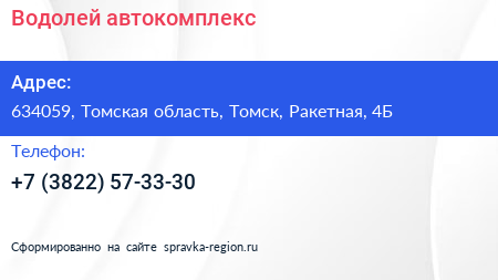 Водолей, автокомплекс по адресу 634059, Томская область, Томск, Ракетная, 4Б в дальнейшем Организация, размещена в следующих категориях: