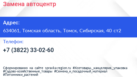 Замена, автоцентр по адресу 634061, Томская область, Томск, Сибирская, 40 ст2 в дальнейшем Организация, размещена в следующих категориях: