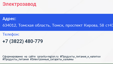 Электрозавод по адресу 634012, Томская область, Томск, проспект Кирова, 58 ст43 в дальнейшем Организация, размещена в следующих категориях: