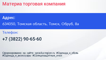 Материа, торговая компания по адресу 634050, Томская область, Томск, Обруб, 8а в дальнейшем Организация, размещена в следующих категориях: