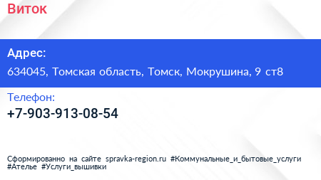 Виток по адресу 634045, Томская область, Томск, Мокрушина, 9 ст8 в дальнейшем Организация, размещена в следующих категориях: