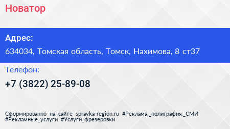 Новатор по адресу 634034, Томская область, Томск, Нахимова, 8 ст37 в дальнейшем Организация, размещена в следующих категориях: