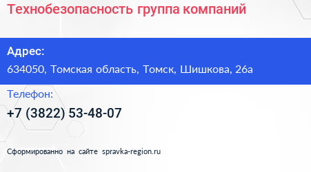 Технобезопасность, группа компаний по адресу 634050, Томская область, Томск, Шишкова, 26а в дальнейшем Организация, размещена в следующих категориях: