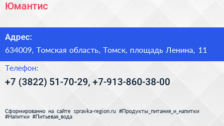 Юмантис по адресу 634009, Томская область, Томск, площадь Ленина, 11 в дальнейшем Организация, размещена в следующих категориях: