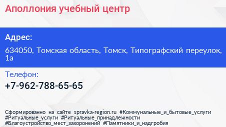 Аполлония, учебный центр по адресу 634050, Томская область, Томск, Типографский переулок, 1а в дальнейшем Организация, размещена в следующих категориях: