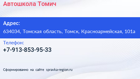 Автошкола Томич по адресу 634034, Томская область, Томск, Красноармейская, 101а в дальнейшем Организация, размещена в следующих категориях: