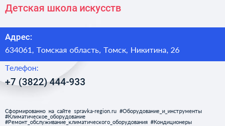 Детская школа искусств по адресу 634061, Томская область, Томск, Никитина, 26 в дальнейшем Организация, размещена в следующих категориях: