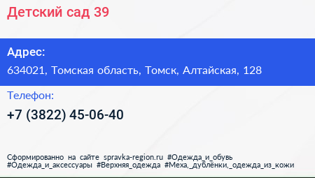 Детский сад №39 по адресу 634021, Томская область, Томск, Алтайская, 128 в дальнейшем Организация, размещена в следующих категориях: