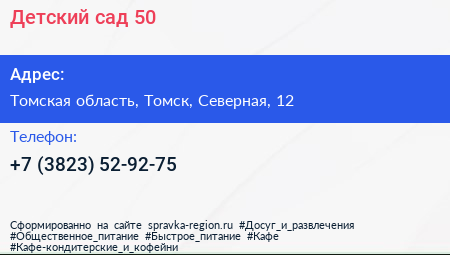 Детский сад №50 по адресу Томская область, Томск, Северная, 12 в дальнейшем Организация, размещена в следующих категориях: