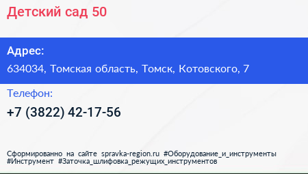 Детский сад №50 по адресу 634034, Томская область, Томск, Котовского, 7 в дальнейшем Организация, размещена в следующих категориях: