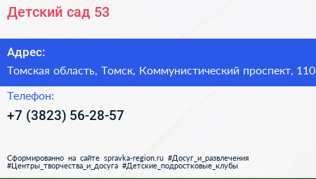 Детский сад №53 по адресу Томская область, Томск, Коммунистический проспект, 110 в дальнейшем Организация, размещена в следующих категориях:
