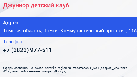 Джуниор, детский клуб по адресу Томская область, Томск, Коммунистический проспект, 116 в дальнейшем Организация, размещена в следующих категориях: