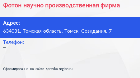 Фотон, научно-производственная фирма по адресу 634031, Томская область, Томск, Созидания, 7 в дальнейшем Организация, размещена в следующих категориях: