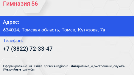 Гимназия №56 по адресу 634014, Томская область, Томск, Кутузова, 7а в дальнейшем Организация, размещена в следующих категориях:
