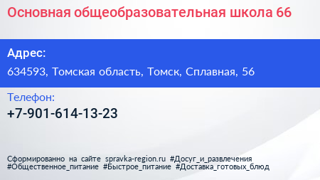 Основная общеобразовательная школа №66 по адресу 634593, Томская область, Томск, Сплавная, 56 в дальнейшем Организация, размещена в следующих категориях: